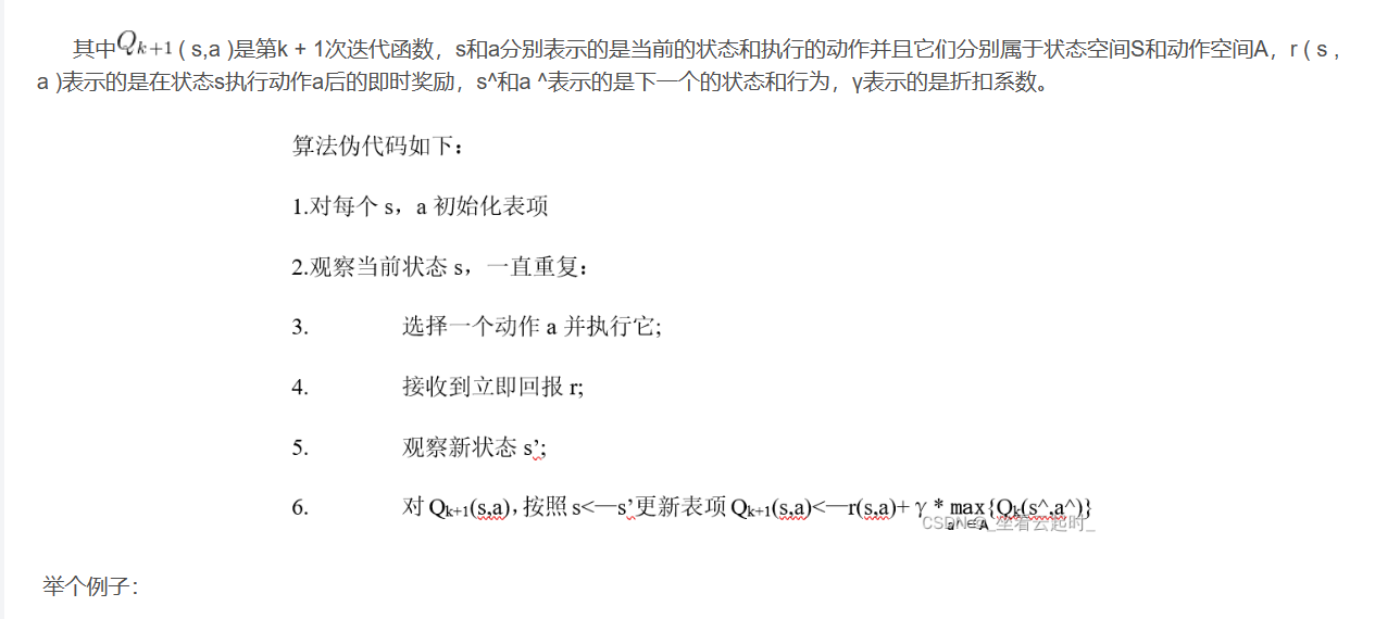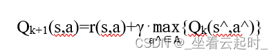 Q-learning是强化学习的算法之一。Q-learning的主要目的就是学习状态动作价值函数的Q ( s , a ),其中Q ( s , a )表示的是在给定当前状态s和采取动作a之后能够获得的收益期望。Q-learning利用状态s和动作a张成一个Q表来储存Q值,然后根据Q值来选取能够获得最大收益的动作。Q-learning采用是值迭代的方法进行求解,其核心的迭代公式为: