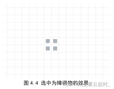 变色的格子就是鼠标点击选中的,如果后悔不想要选中这个,再点击一次,就可以取消,选中需要设置障碍物的格子之后,点击按钮“设置障碍物”,格子就会变成灰色,效果如下:
