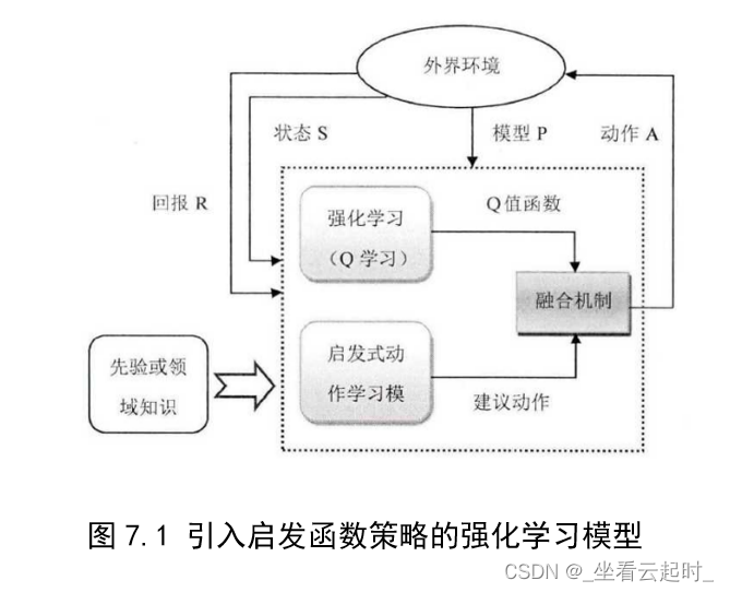 该文章提出了一个“启发式策略选择”的概念,就是在强化学习中融入人的先验知识或者过程知识来设计和优化启发式奖赏函数,与原有的根据Q值表进行动作选择的策略相融合,来使智能体更快达到最优。