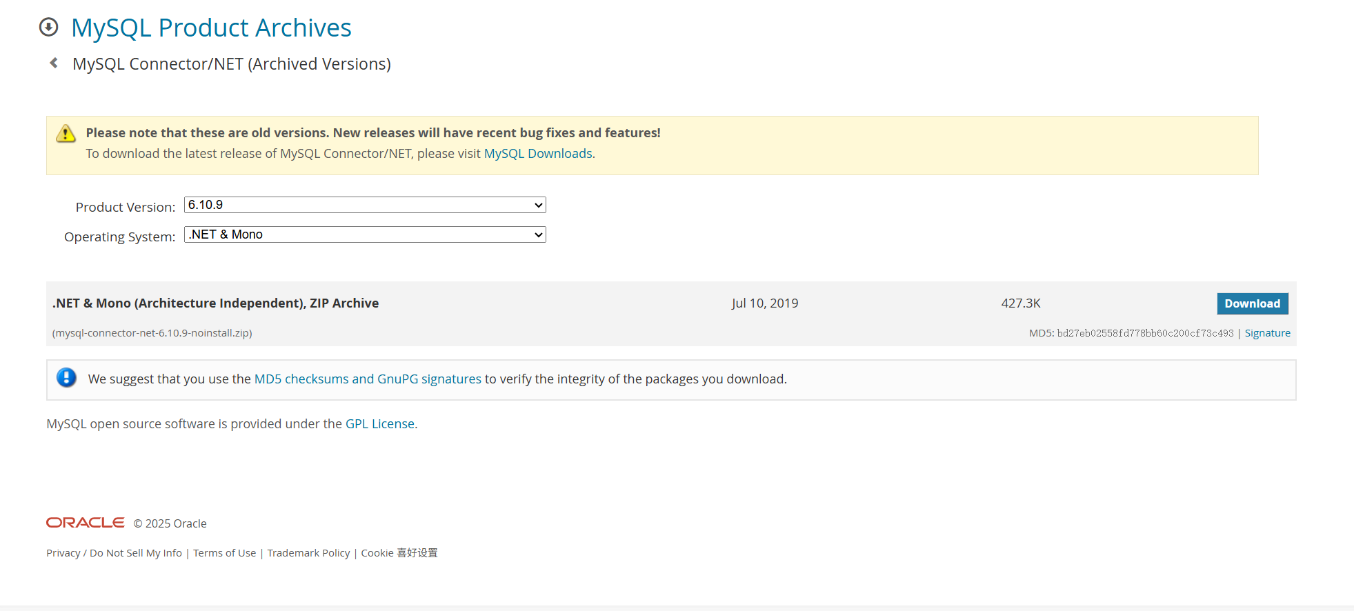 MySQL :: Download MySQL Connector/NET (Archived Versions)