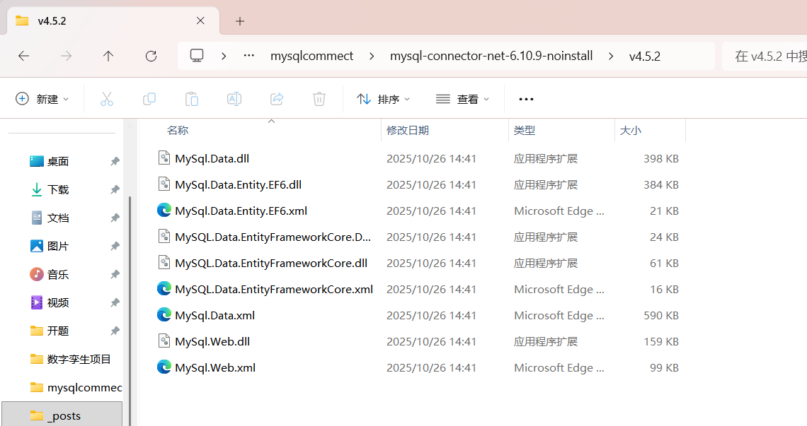 把刚才解压缩后v4.5.2文件夹内的文件MySql.Data.dll拖入mysql文件夹