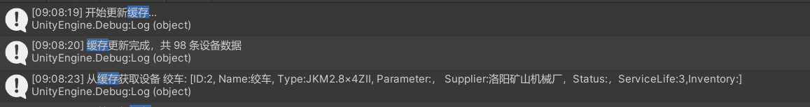 Debug.Log($"缓存更新完成,共 {rowCount} 条设备数据");